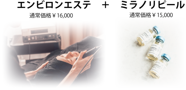 超音波とイオンを同時に導入し集中的にビタミンを浸透させる『ソノイオントリートメント』と、皮溝にぴったりと密着するアルジネートマスクを使用し、ビタミンAとビタミンCのイオン導入を行う『クールビタミントリートメント』をダブルに行うことにより、よりビタミンの浸透を高め、お肌のダメージを短期間で効果的に改善していきます。